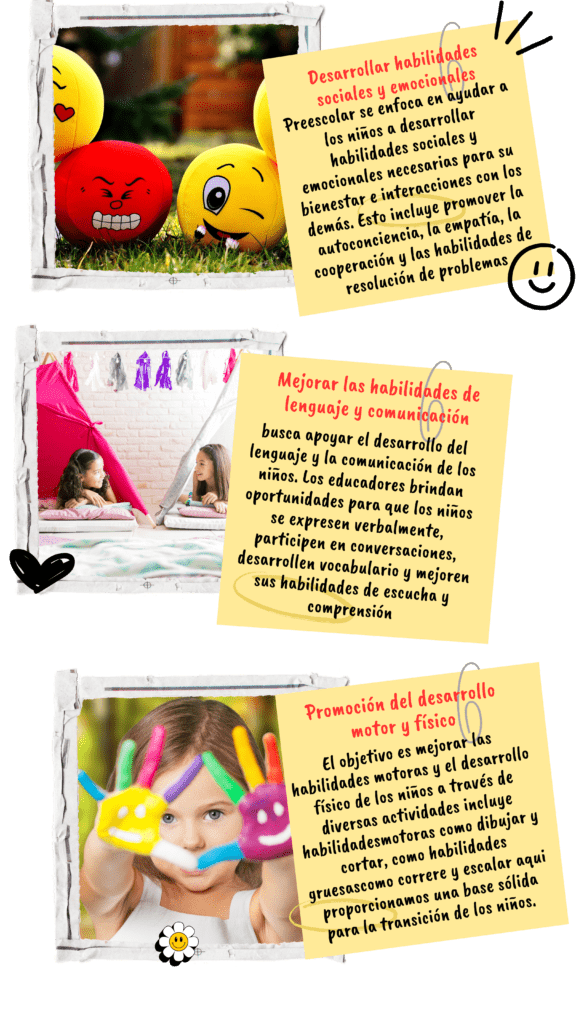 los niños comienzan a desarrollar habilidades básicas y fundamentales para su aprendizaje. Se enfocan en actividades lúdicas, artísticas y de socialización. Aprenden a seguir instrucciones, a interactuar con sus compañeros, a reconocer letras y números, y a desarrollar habilidades motrices. También se fomenta la creatividad, la curiosidad y el amor por el aprendizaje