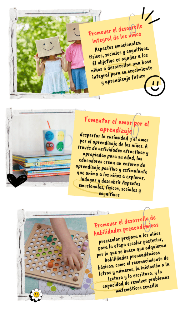 los niños continúan su proceso de aprendizaje y desarrollo. Se enfocan en actividades más estructuradas que les ayudan a adquirir habilidades académicas y sociales. Aprenden a leer y escribir palabras simples, a contar y reconocer formas básicas, colores y patrones. Se promueve la creatividad a través de actividades artísticas y se fomenta la autonomía y la colaboración en grupo. También se trabaja en el desarrollo de habilidades sociales, emocionales y motoras.